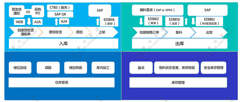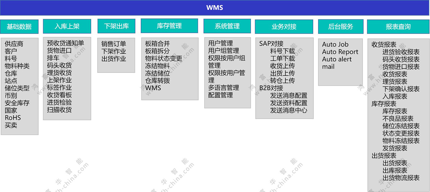 支持庫存轉移、調撥,棧板拆合,物料狀態變更,儲位凍結和解凍,計算儲位容量